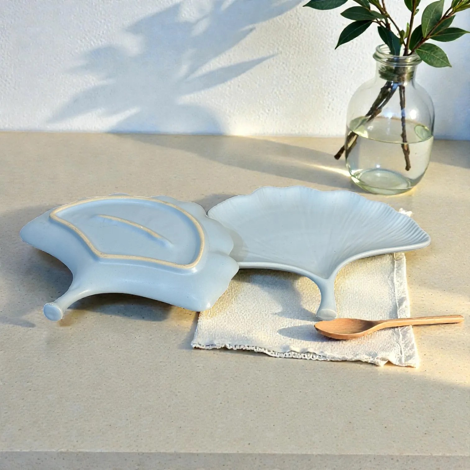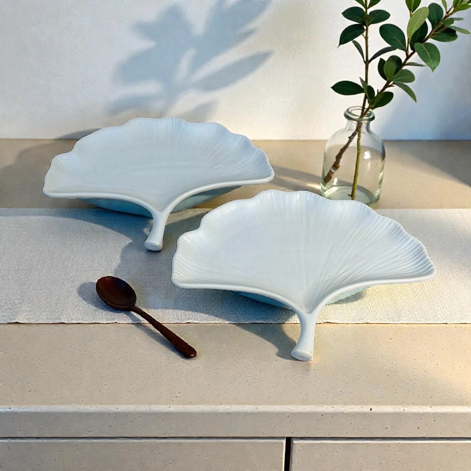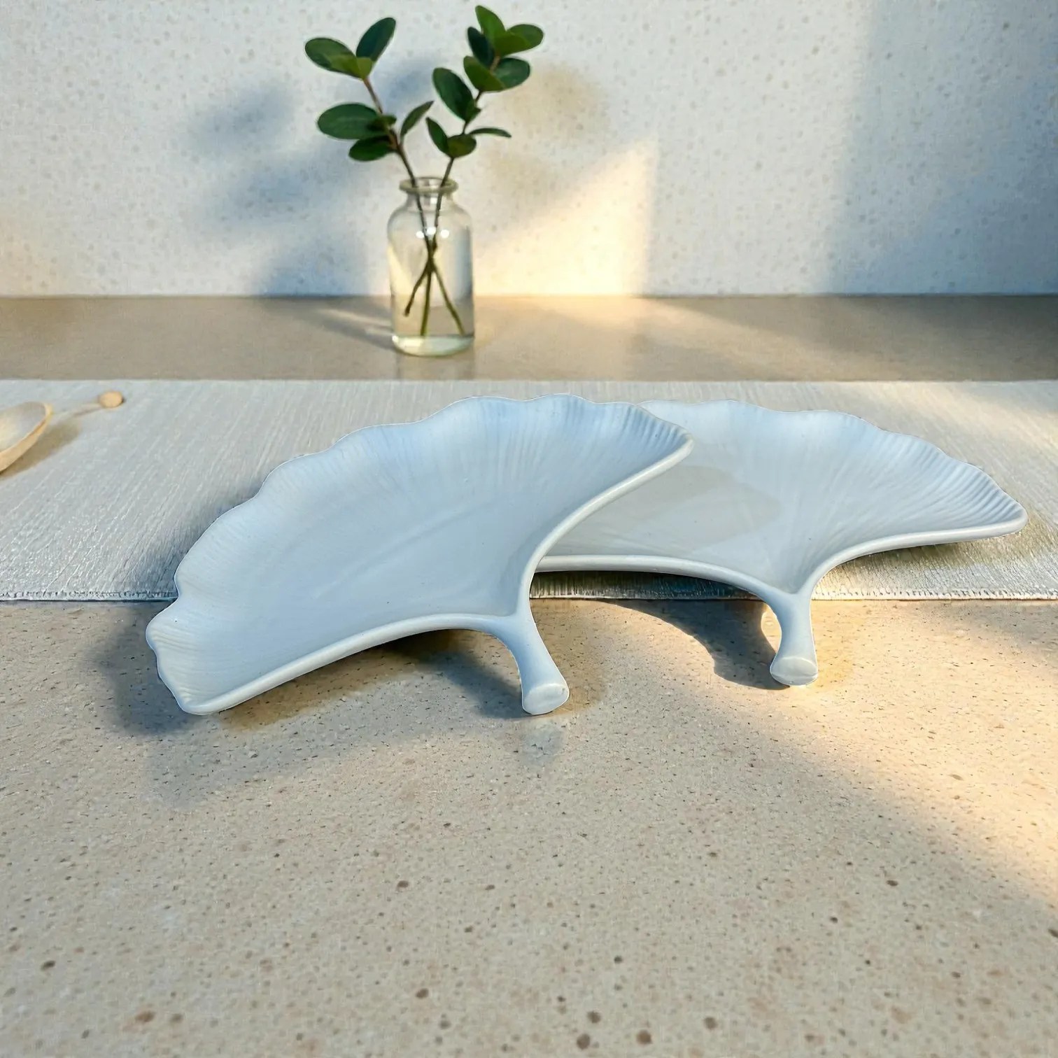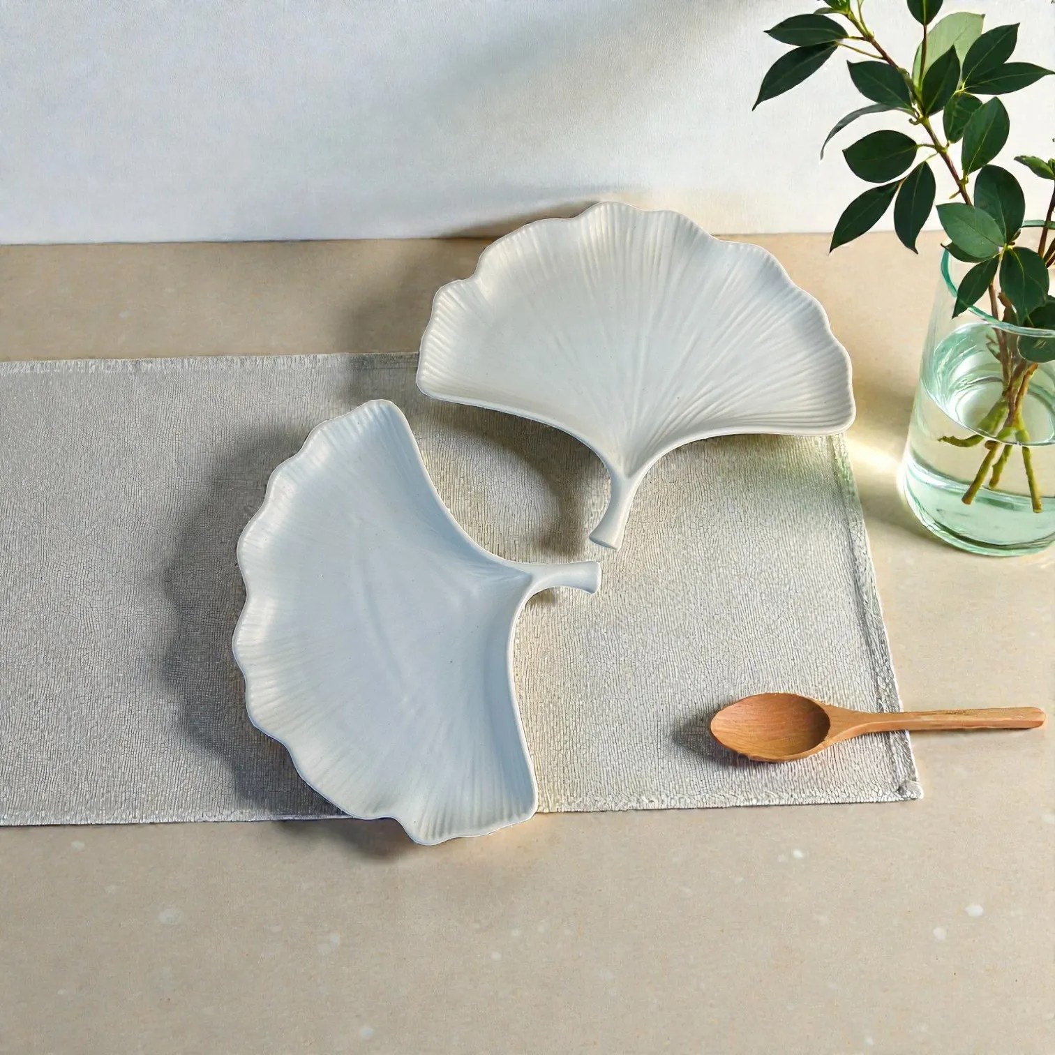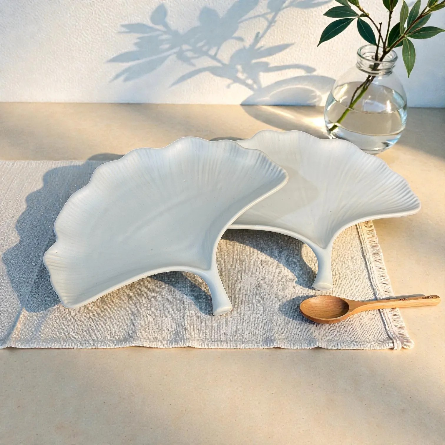 Harmiche CloudNest Leaf Ceramic Serving Platters (Set of 2) – White Ginkgo Leaf Snack & Dessert Platters | 25 x 20.5 cm