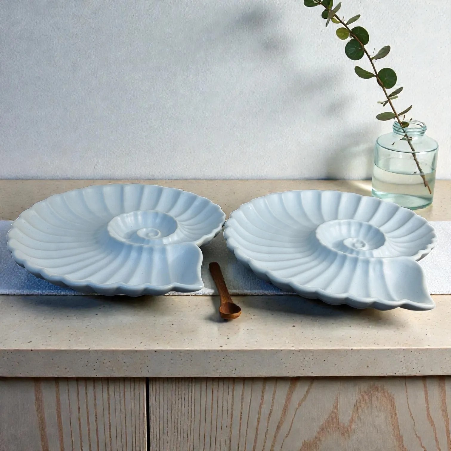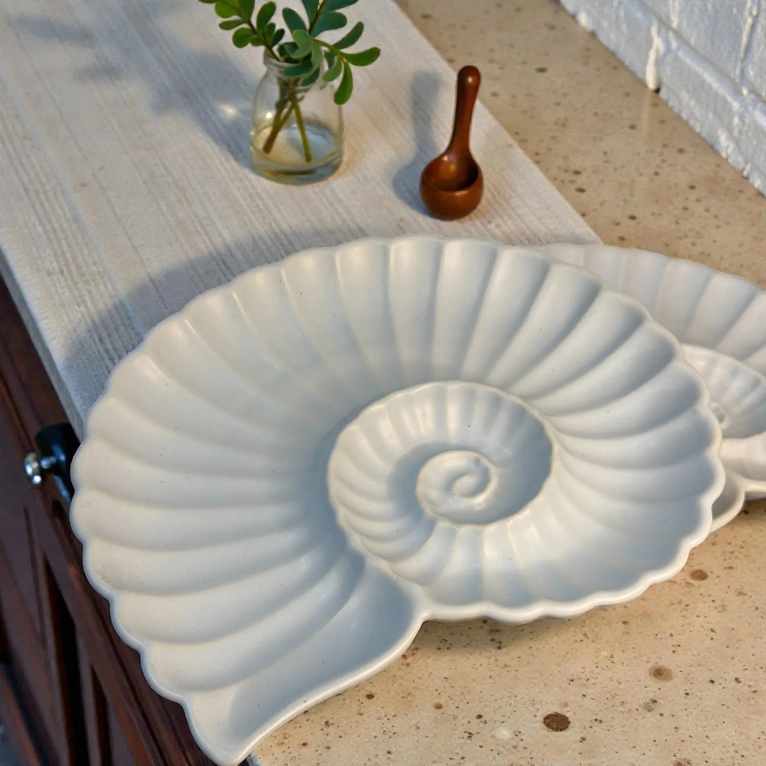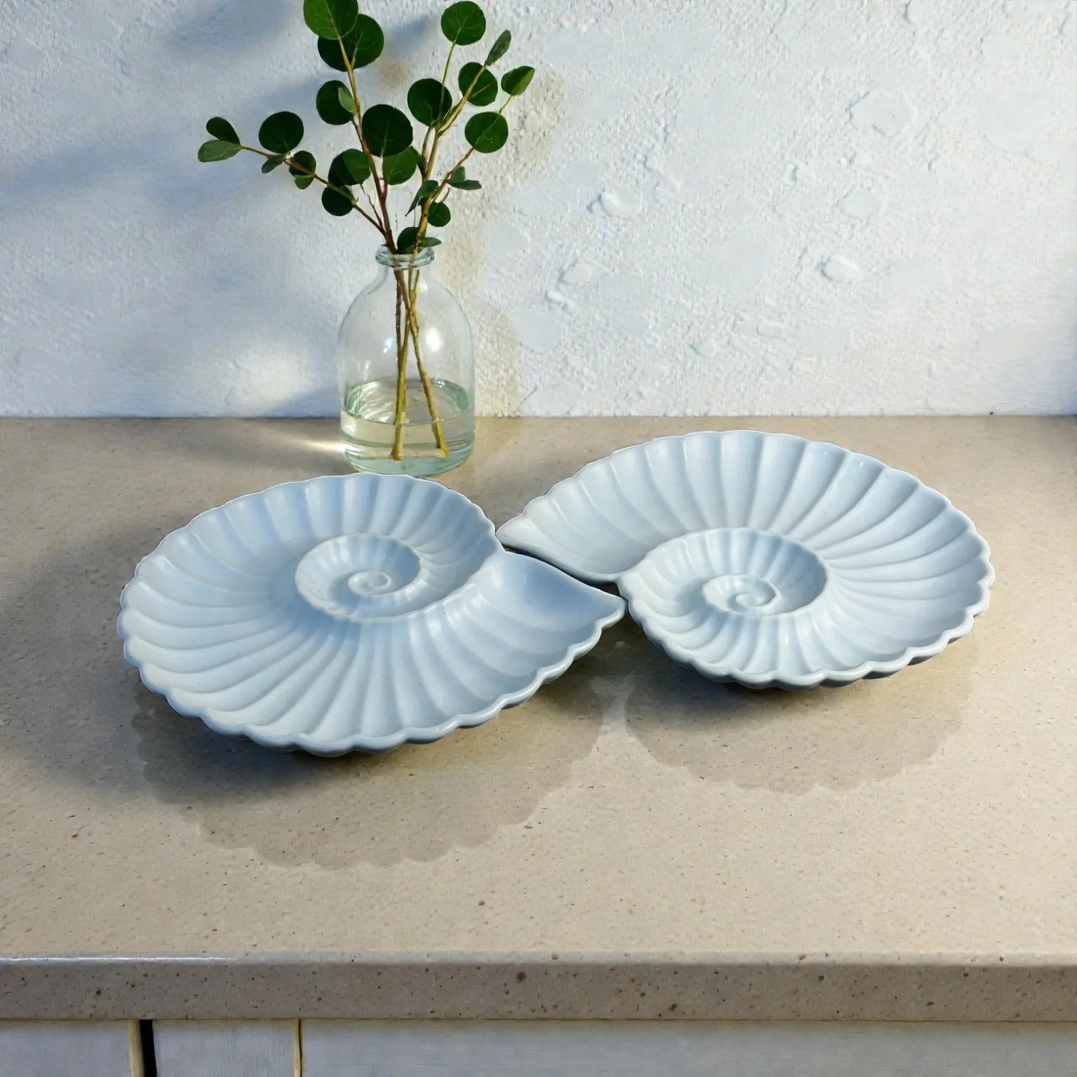 Harmiche Cloudnest Nautilus Shell Ceramic Serving Platters (Set of 2) – 25 x 22 cm | White Statement Snack & Dessert Platters