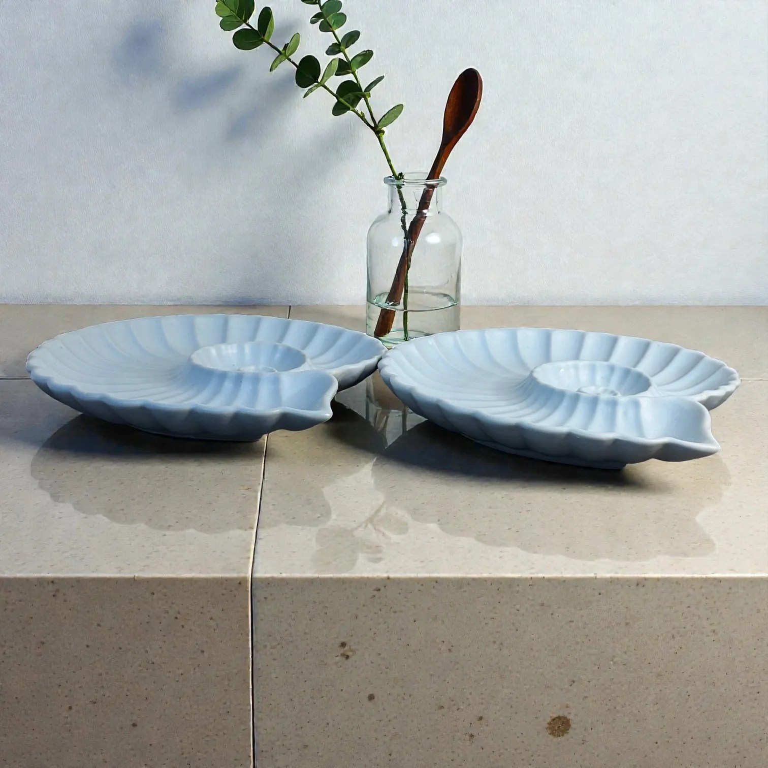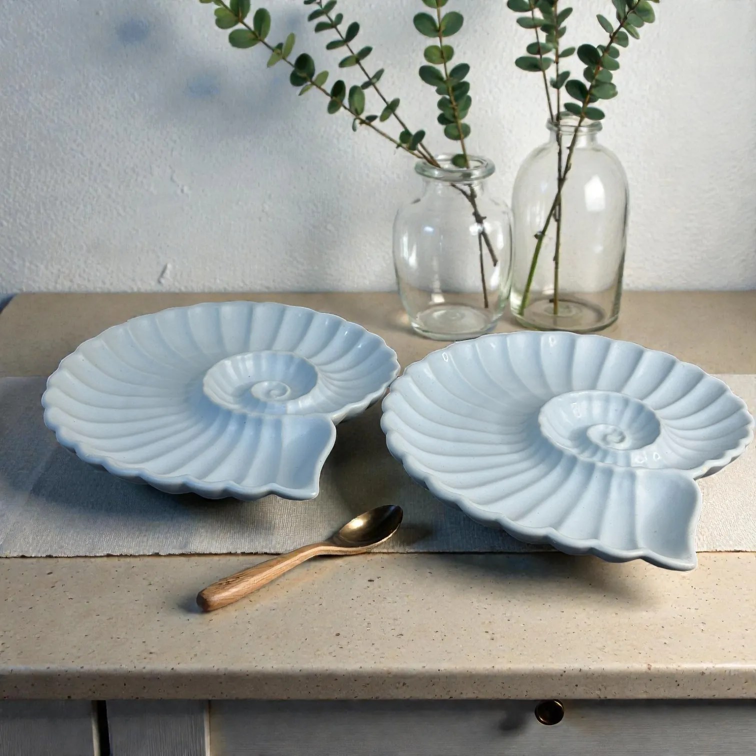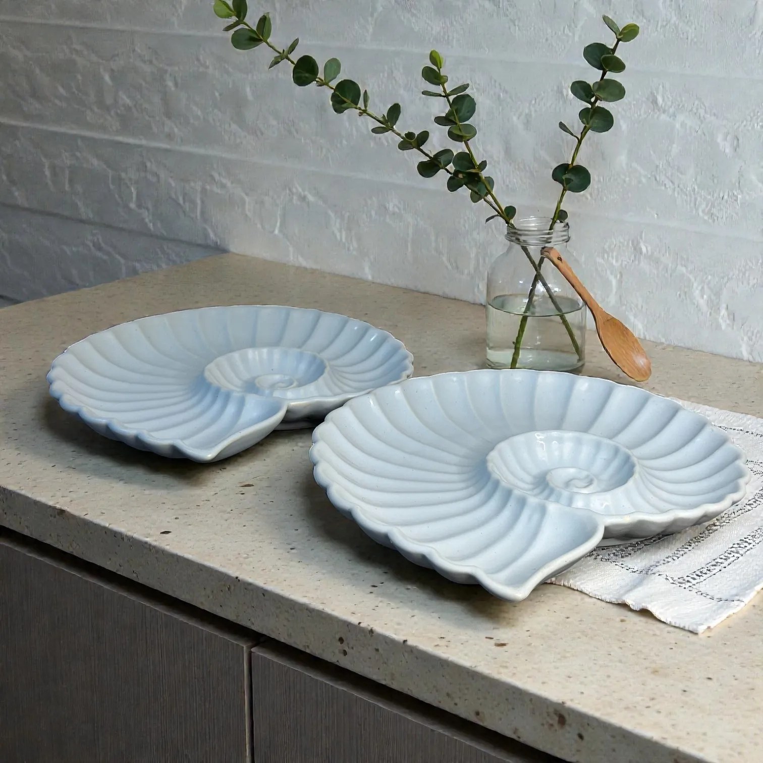 Harmiche Cloudnest Nautilus Shell Ceramic Serving Platters (Set of 2) – 25 x 22 cm | White Statement Snack & Dessert Platters