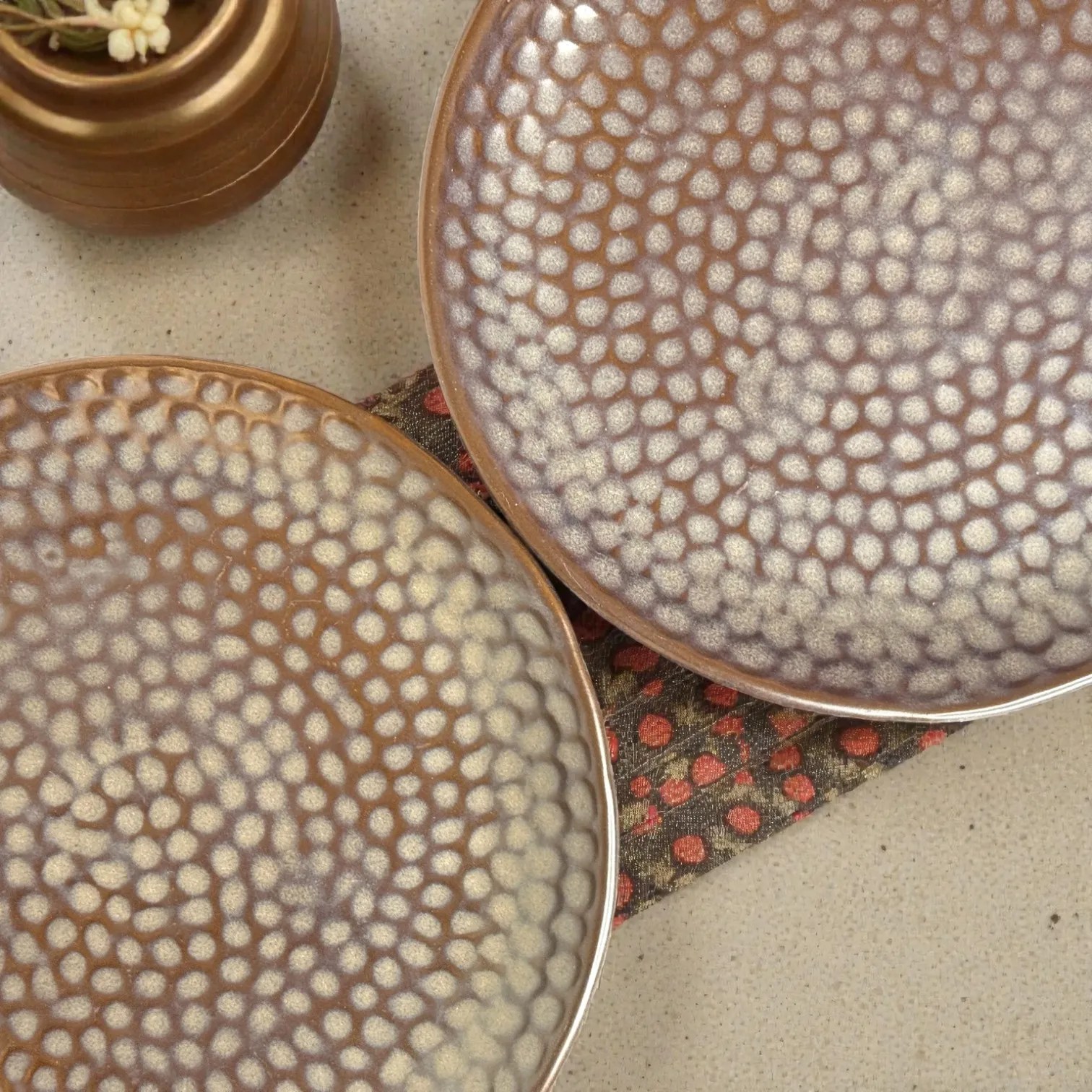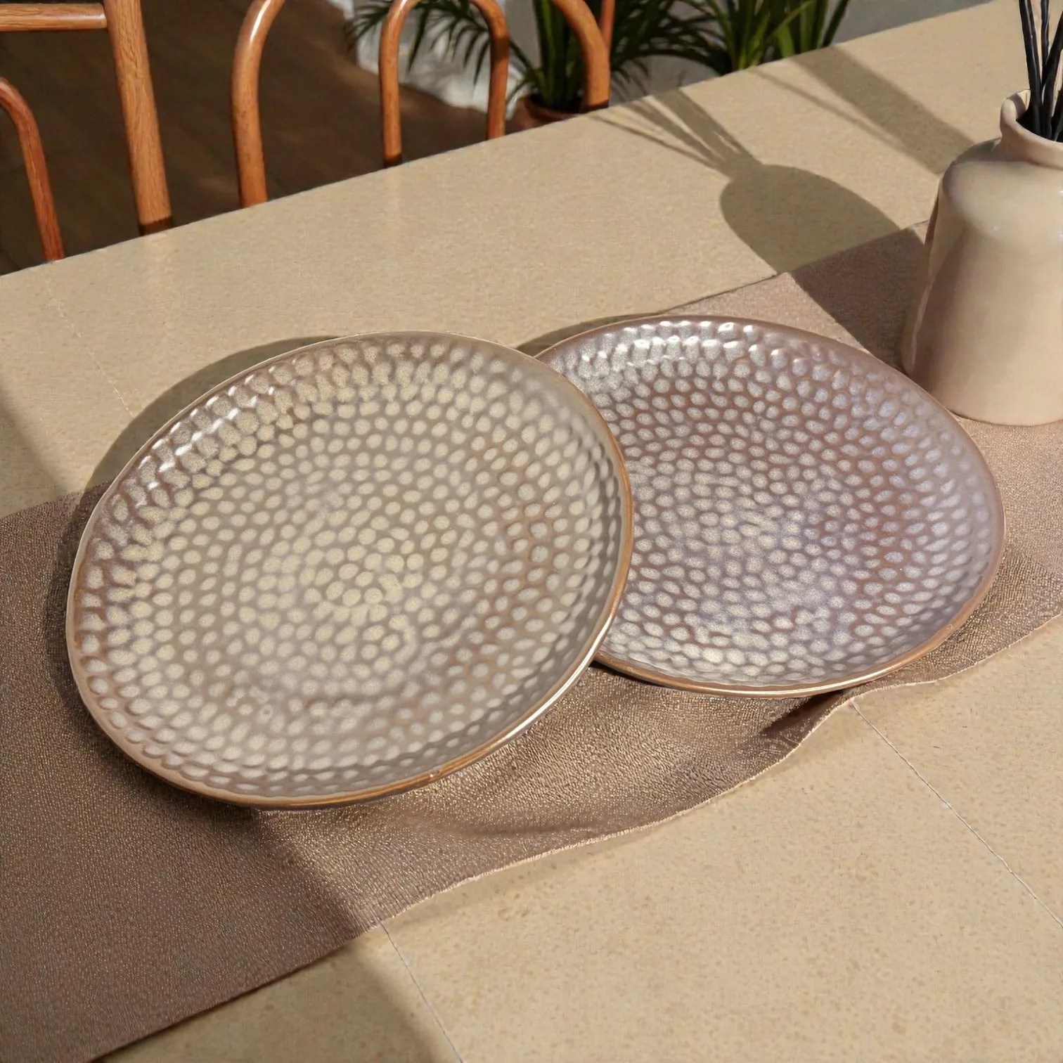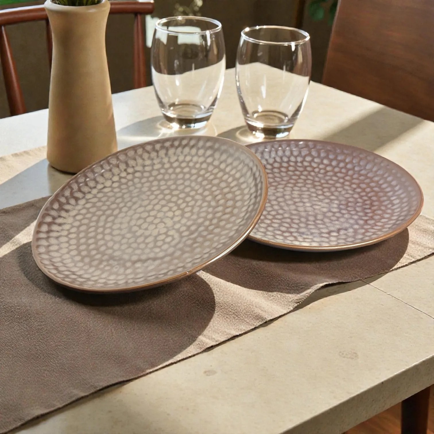 If your tableware needs to look premium even before the food hits the plate, meet the Harmiche Graphite Pebble Ceramic Dinner Plates. Crafted as a set of 2 large 10-inch plates, this design is made for modern Indian homes that want understated luxury—textured, elegant, and unmistakably high-end. The surface features a unique pebble-inspired pattern that feels like a refined stone mosaic, finished in a soft graphite-grey palette with warm earthy undertones. The result is a plate that looks artisanal, photographs beautifully, and makes even simple meals feel “served.”