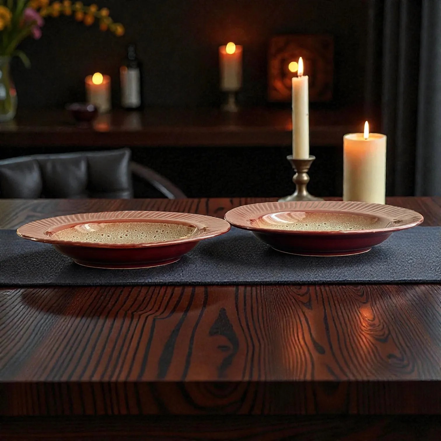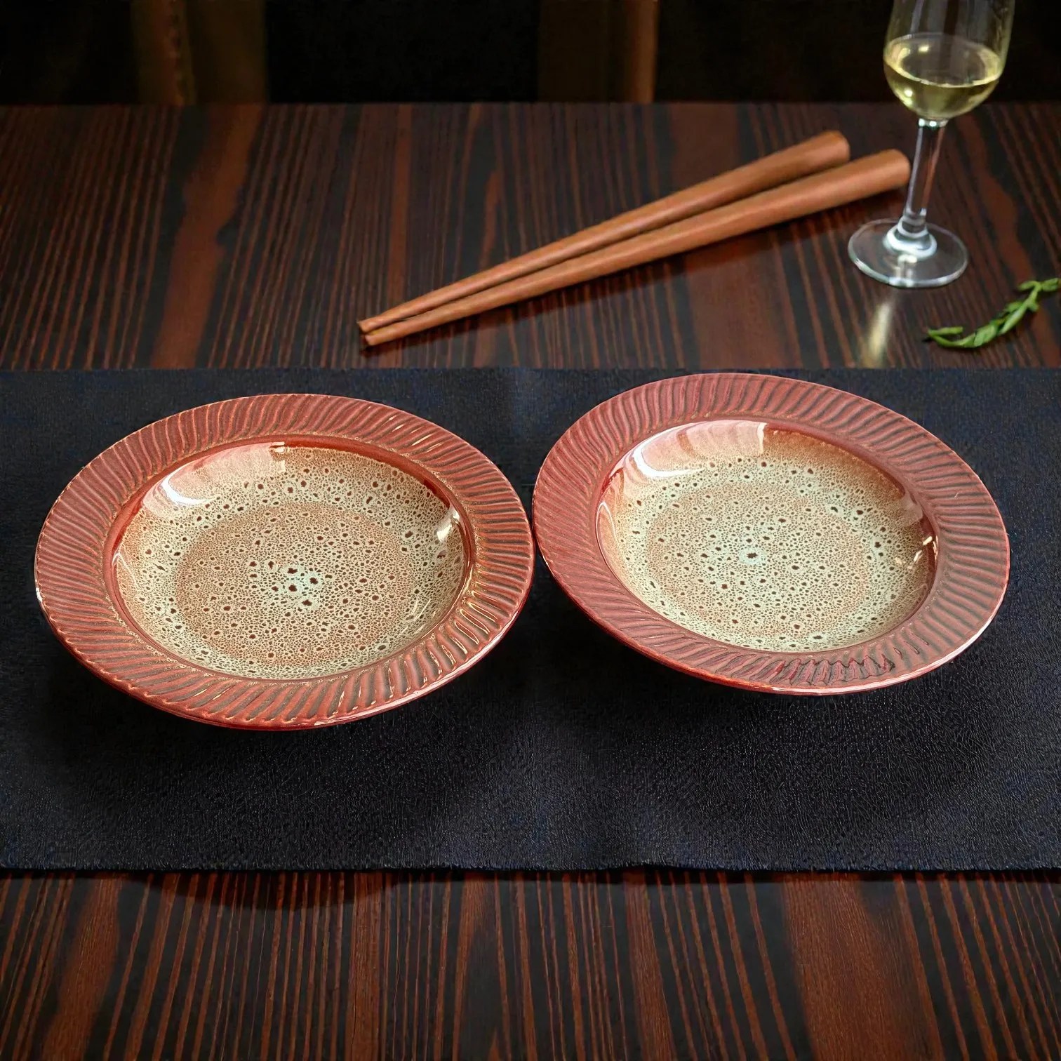 Bring restaurant-style plating home with the Harmiche BurntAmber Ceramic Pasta Plates (Set of 2)—crafted to make everyday meals look instantly elevated. Designed in a versatile wide-rim pasta plate silhouette, each piece blends the elegance of a plate with the comfort of a shallow bowl, so saucy pastas, curries, salads, and shareable appetisers sit beautifully without spilling.