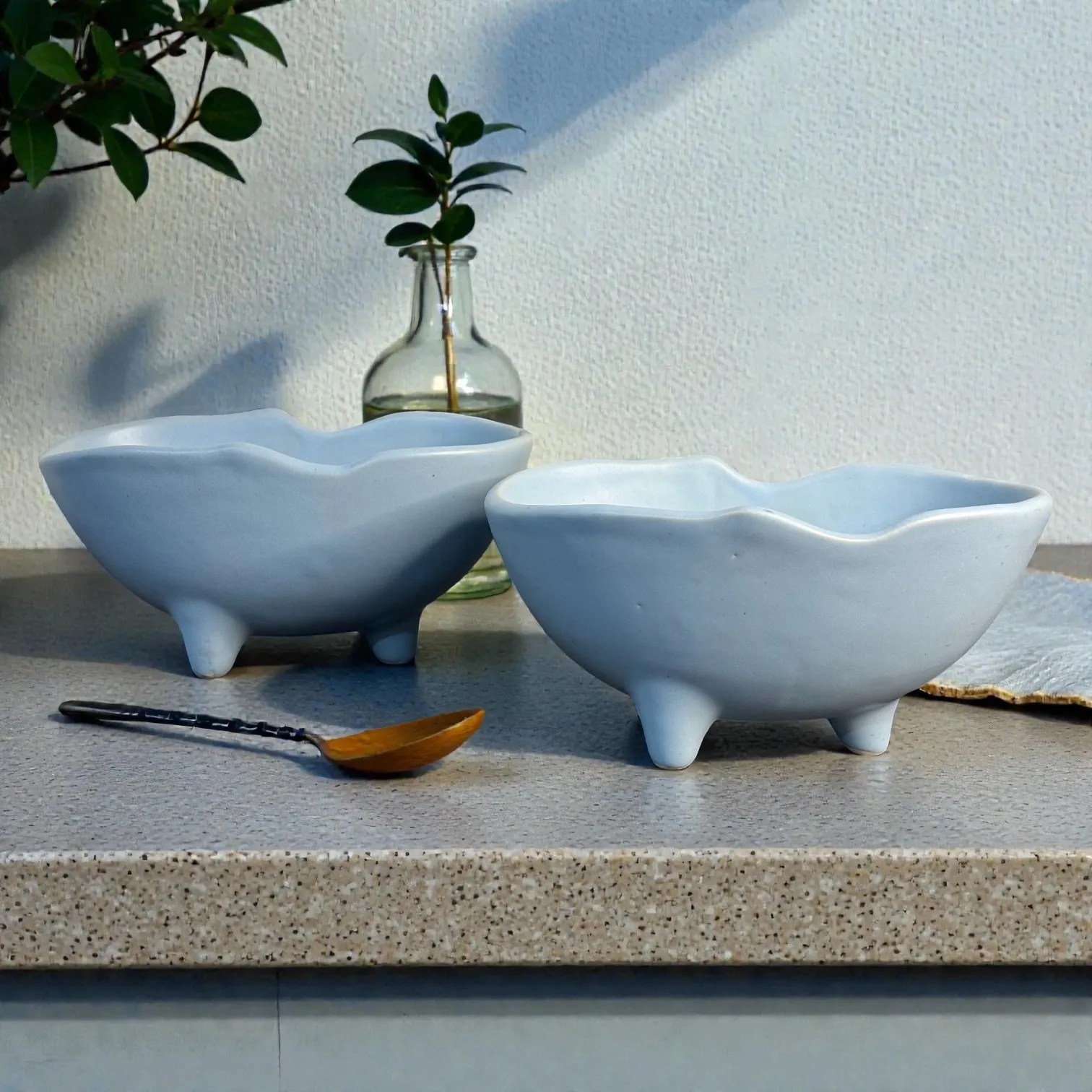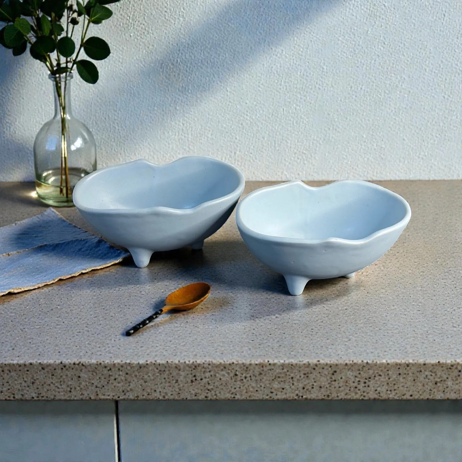 Meet the bowls that instantly make a table look “styled”—without trying. The Harmiche CloudNest Footed Ceramic Bowls (Set of 2) are designed with an organic, wavy rim and a soft matte sky-blue finish that feels calm, modern, and premium. Inspired by sculptural, cloud-like forms, these bowls bring a minimal, boutique-aesthetic to everyday serving—snacks at 5 pm, soup at dinner, desserts after, or a beautifully plated breakfast the next morning.
