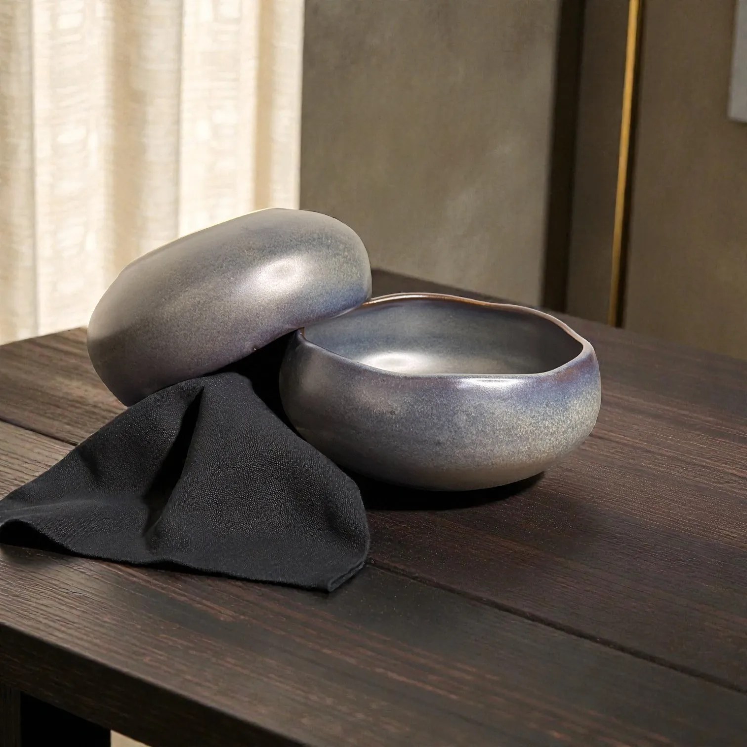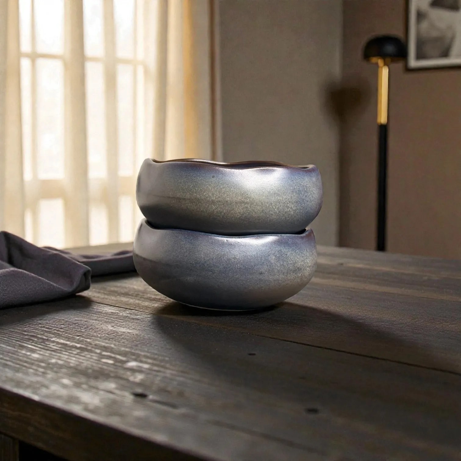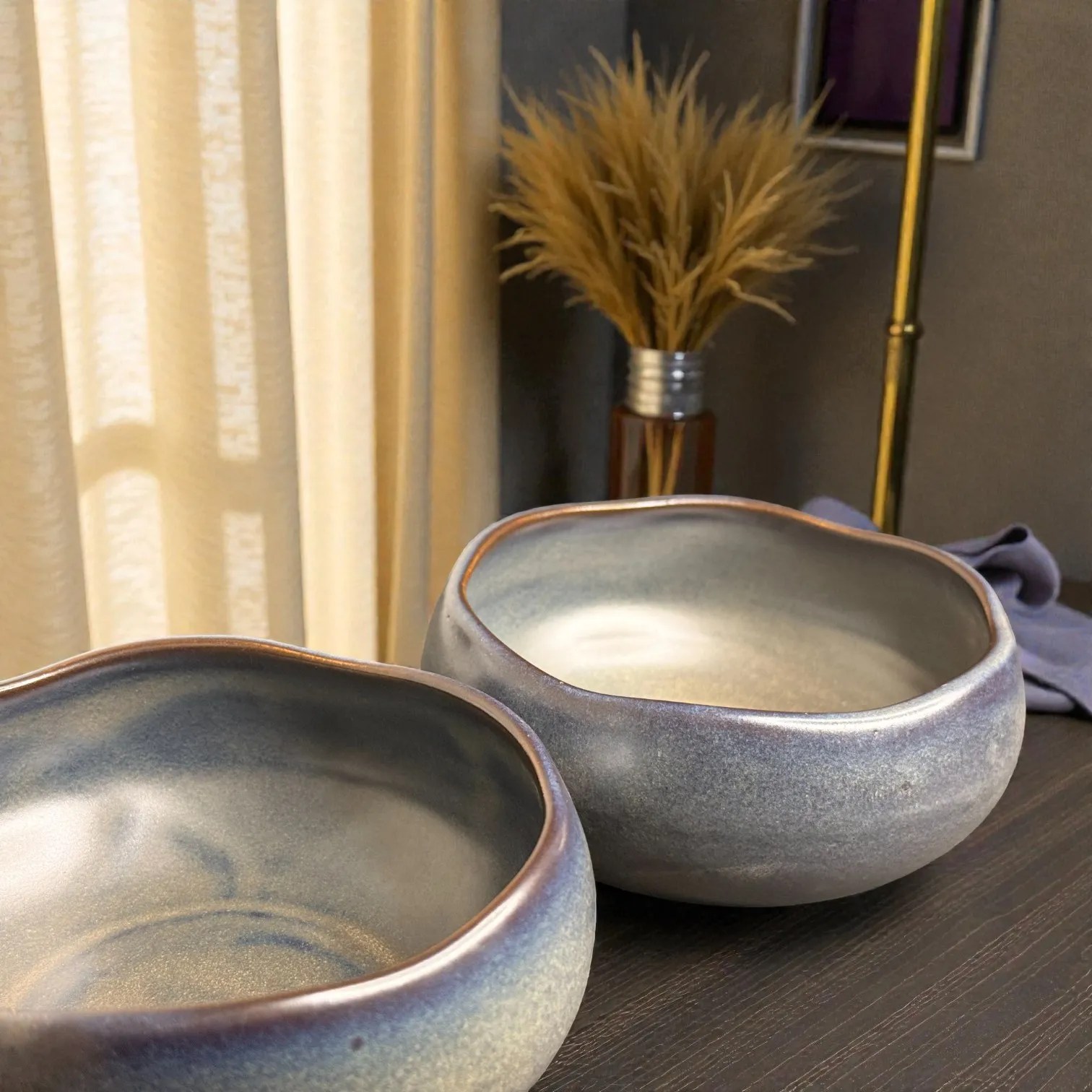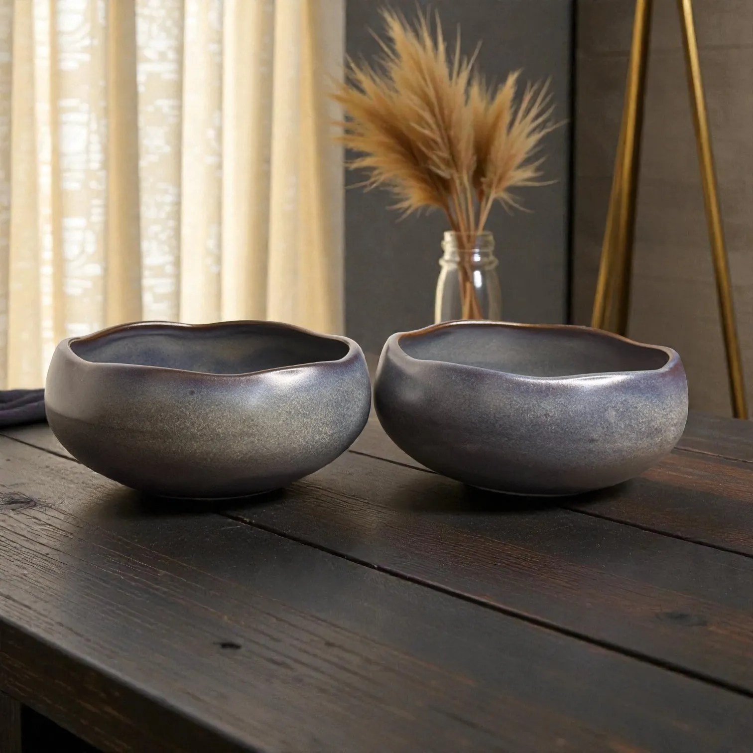 Meet your new everyday showpiece: the Harmiche Graphite Pebble Deep Ceramic Bowls Set (Set of 2). Inspired by river-worn stone and finished in a smoky graphite glaze, these bowls bring a quiet, premium mood to the table—perfect for modern Indian homes that love minimal design with a handcrafted soul.