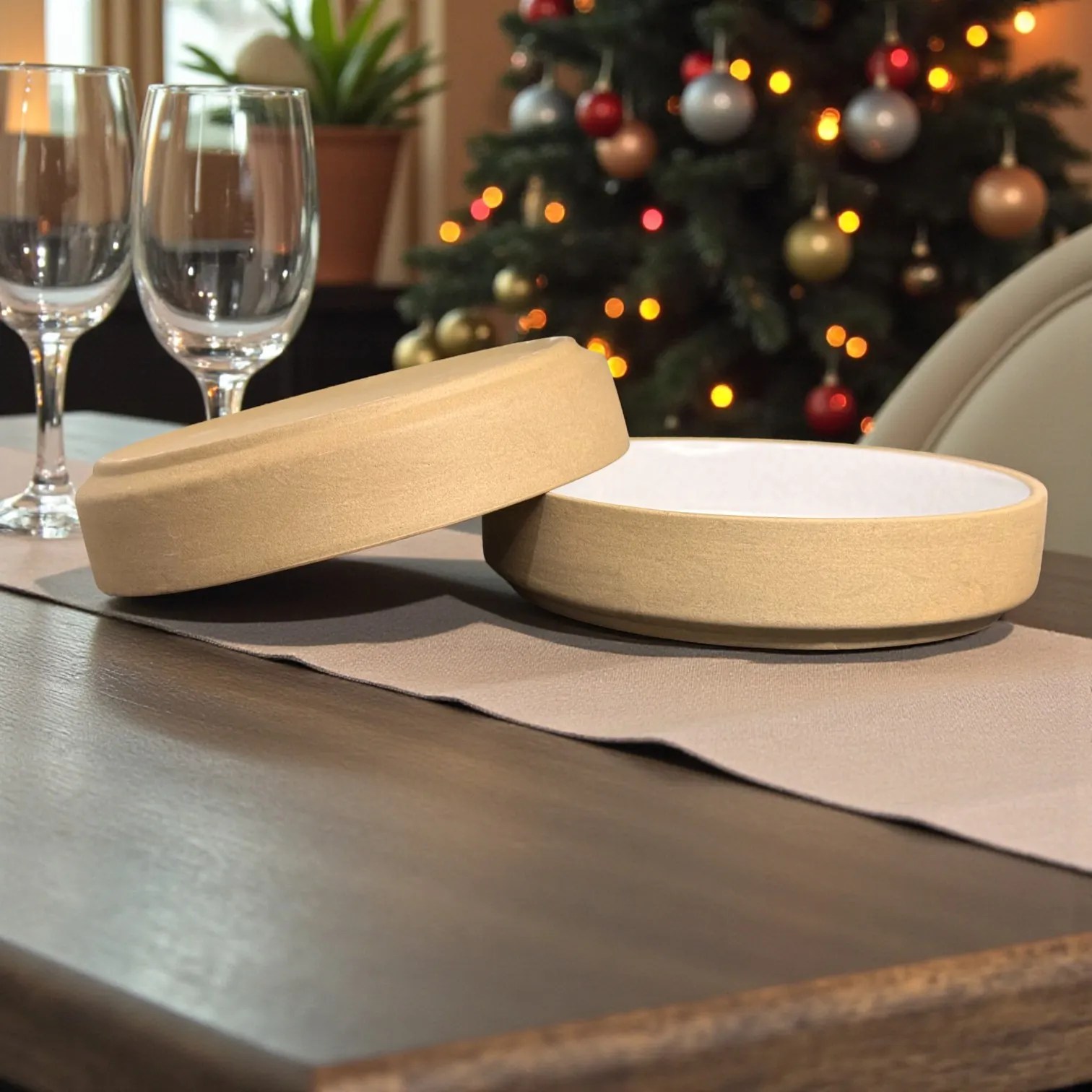 From a styling perspective, the SandDune colourway is made for contemporary homes. Pair it with a neutral runner, minimal glassware, and warm lighting for an elevated, fine-dining feel. The matte exterior keeps reflections soft and premium in photos, while the white glazed interior ensures your food looks appetising and high-contrast—great for product photos, UGC, and festive hosting shots.