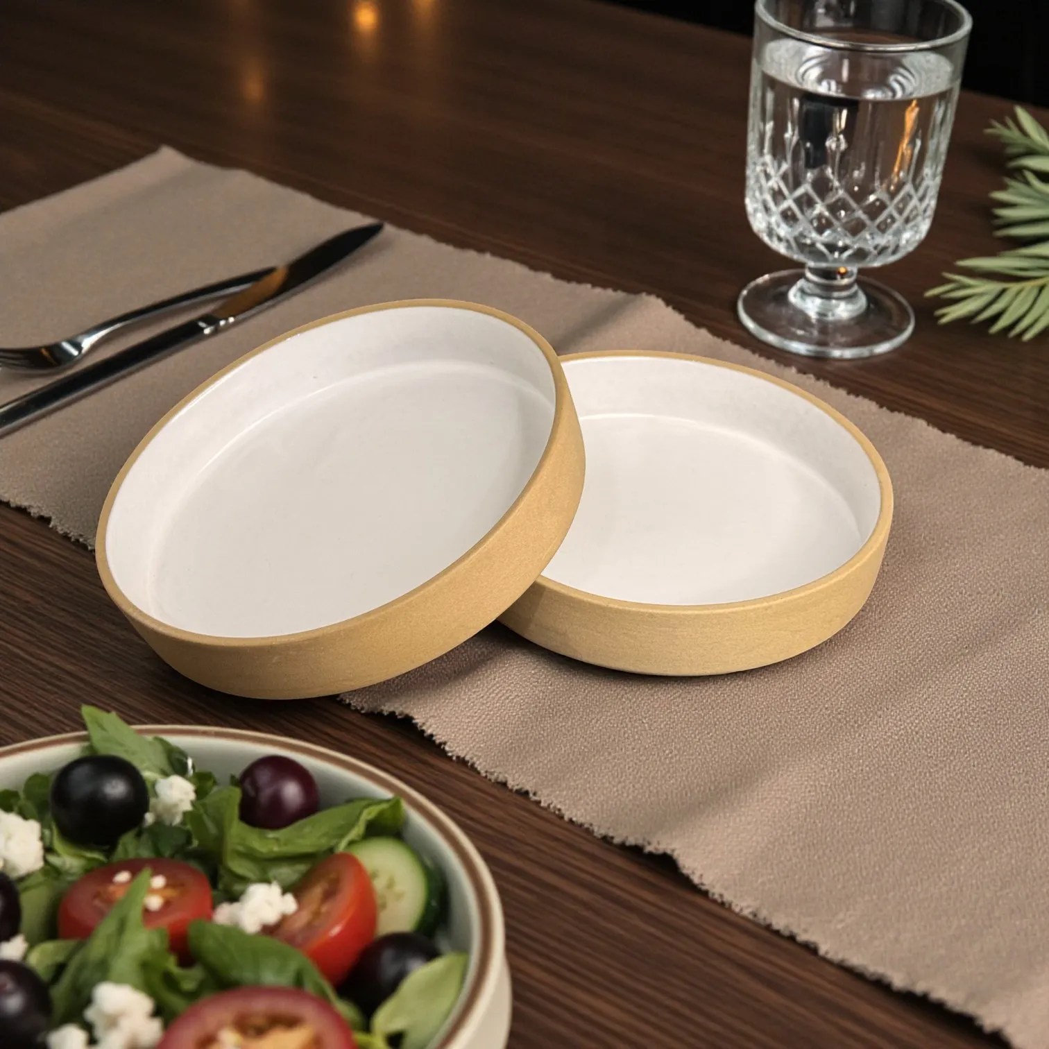 The first thing you’ll notice is the calming contrast of finishes. The outside carries a soft matte sand-beige tone that feels understated and luxurious—minimal, earthy, and easy to style with wood, stone, linen, steel, or gold cutlery. The inside is finished in a smooth white glaze, chosen specifically to enhance presentation: greens look brighter, sauces look cleaner, and garnishes pop with a crisp, editorial look. It’s the kind of serveware that instantly upgrades your table, even for something as simple as cucumber salad or fruit.