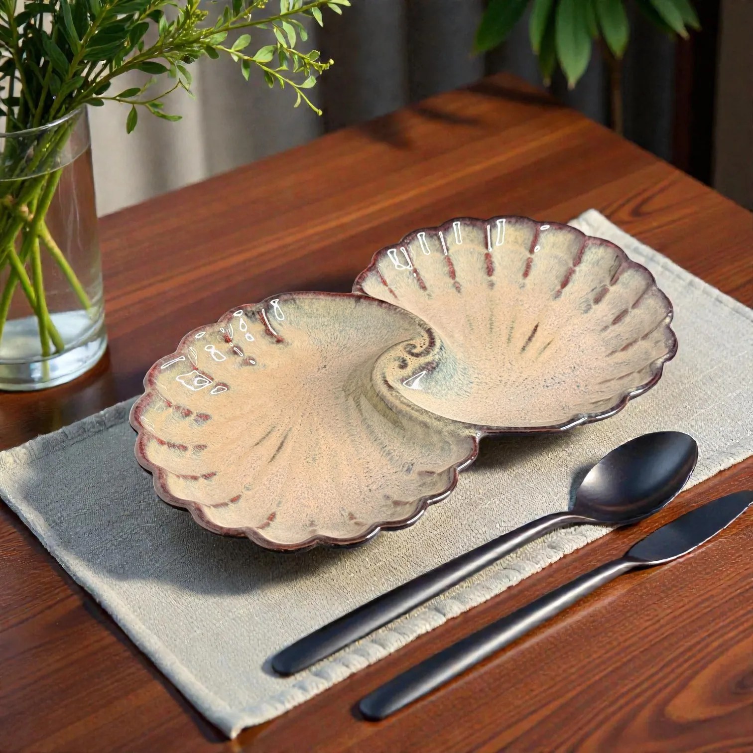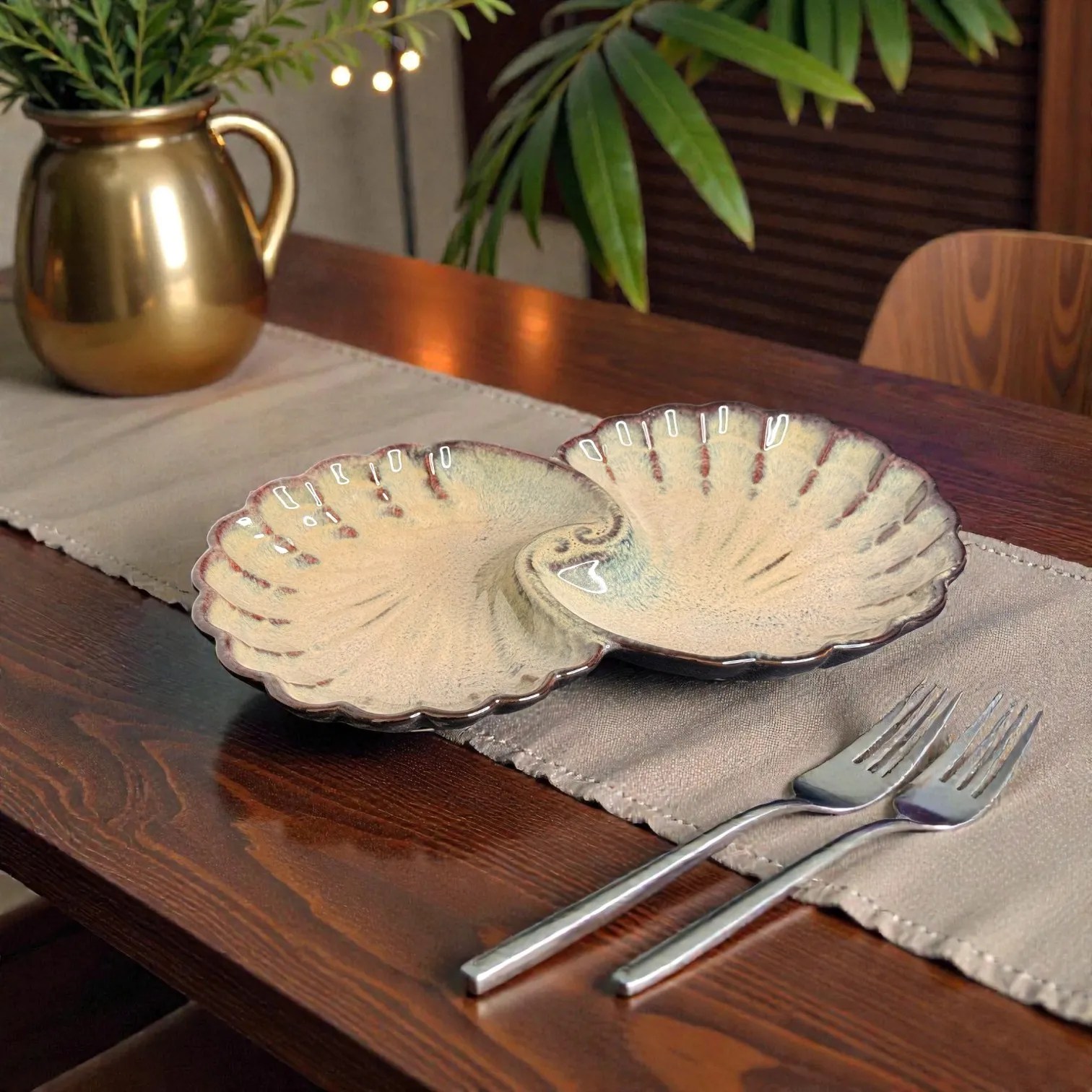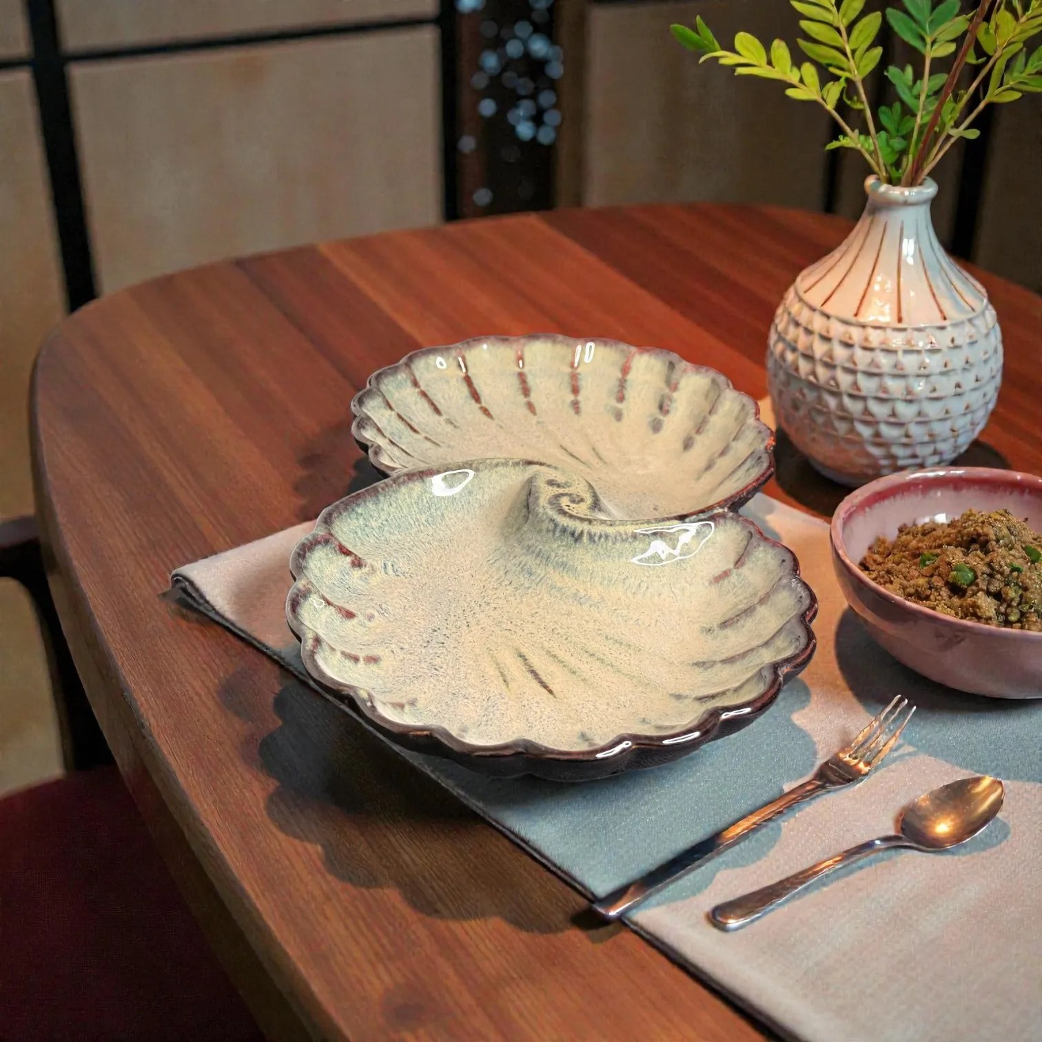 Turn everyday hosting into a styled moment with the Harmiche TideShell Swirl Ceramic Platter (12” x 6”)—a sculptural, shell-inspired serving piece designed to look like it belongs in a boutique hotel brunch spread. With its elegant scalloped edges and a natural swirl centre, this platter doesn’t just hold food—it frames it, making appetisers, desserts and shared bites feel instantly more premium.