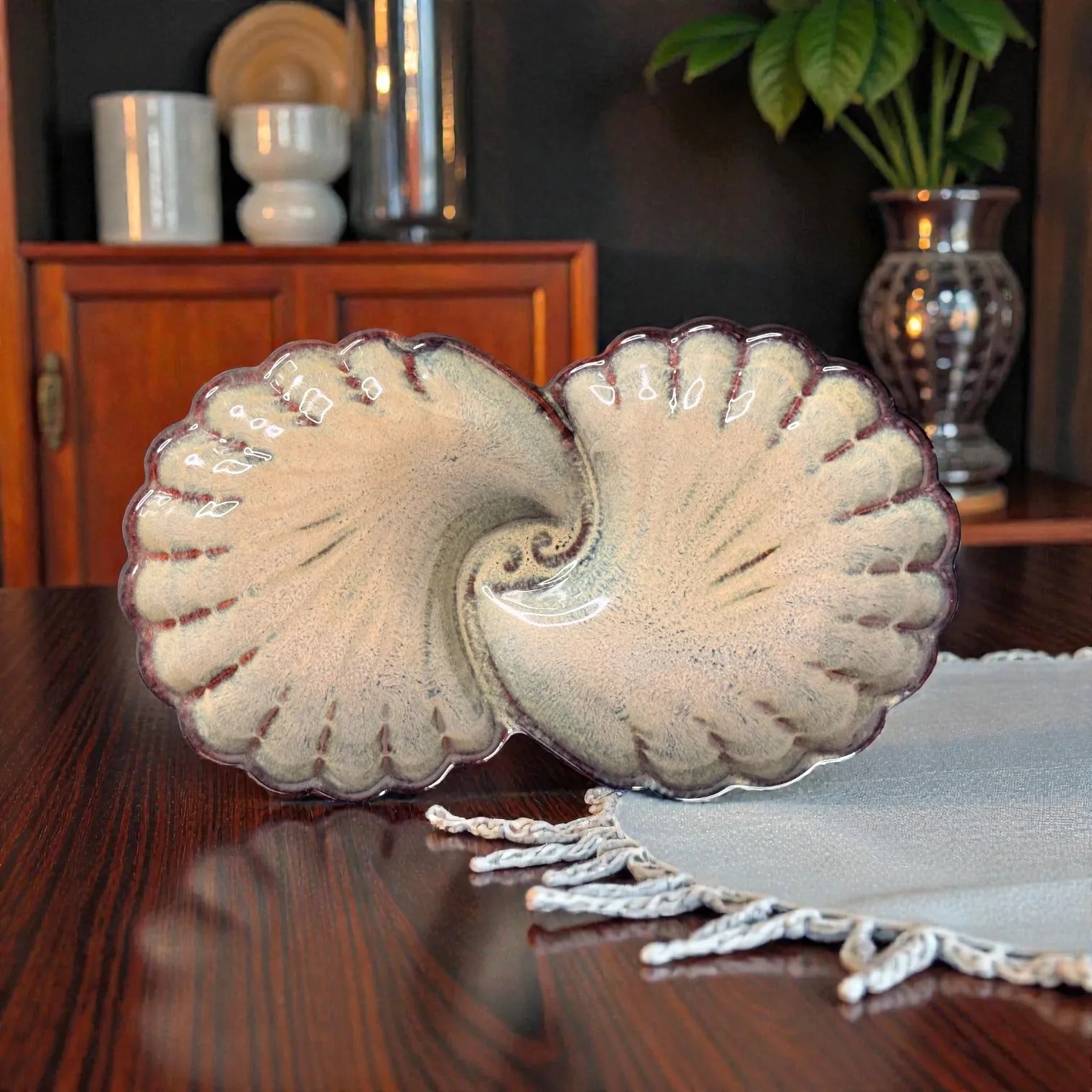 Harmiche TideShell Swirl Ceramic Platter (12” x 6”) | Statement Serving Platter