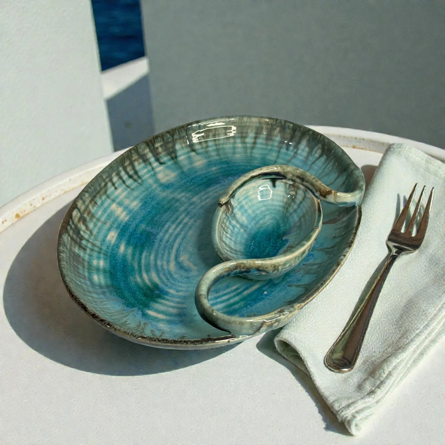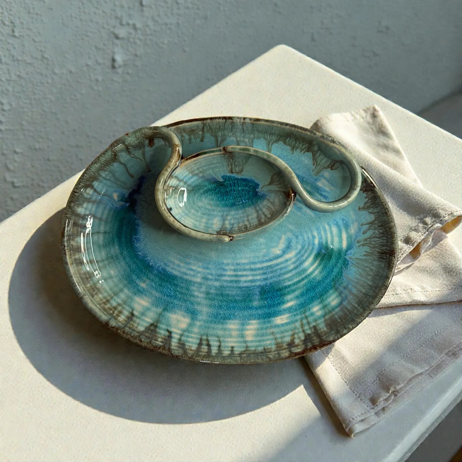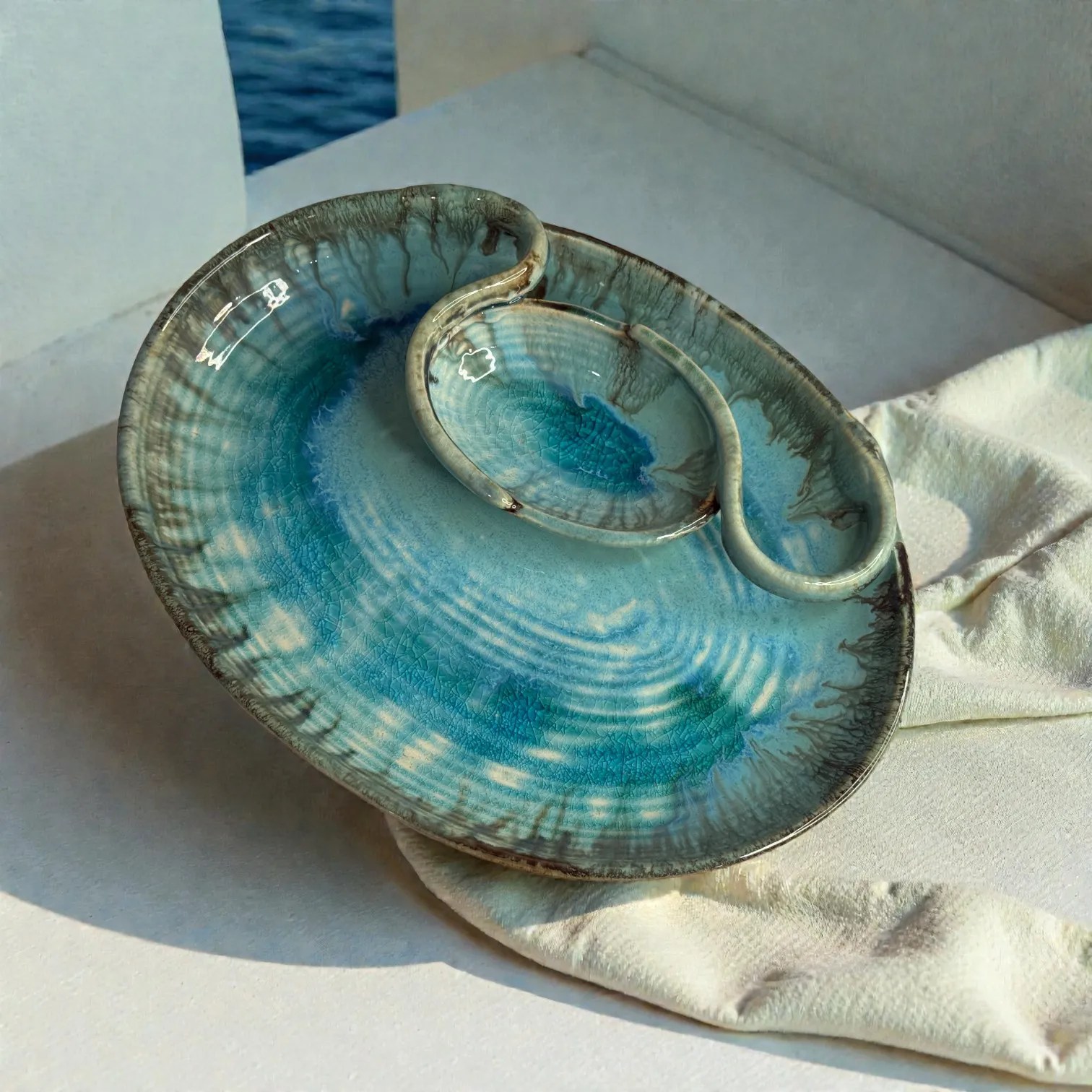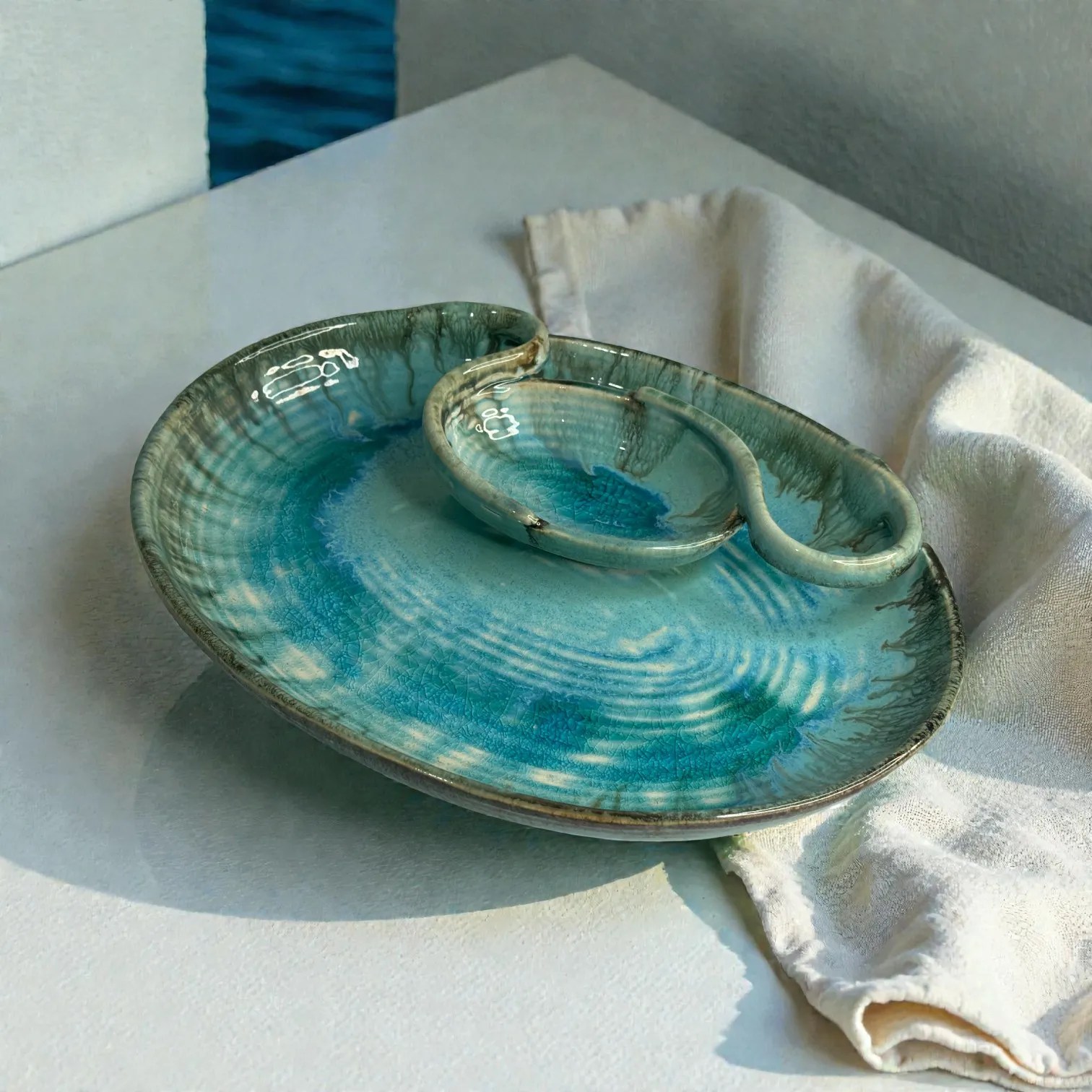 The first thing you notice is the glaze. Laguna Luxe is inspired by coastal watersโan oceanic blue that pools beautifully in the centre and softens into lighter tones, framed by earthy, artisanal edges. The result is a platter that looks like it was dipped in the sea and lifted into your homeโperfect for modern Indian tables, minimal dรฉcor, and elevated hosting. Every platter is hand-finished, so the tones and glaze movement will have subtle variationsโthis is the charm of true ceramic craft, not factory sameness.