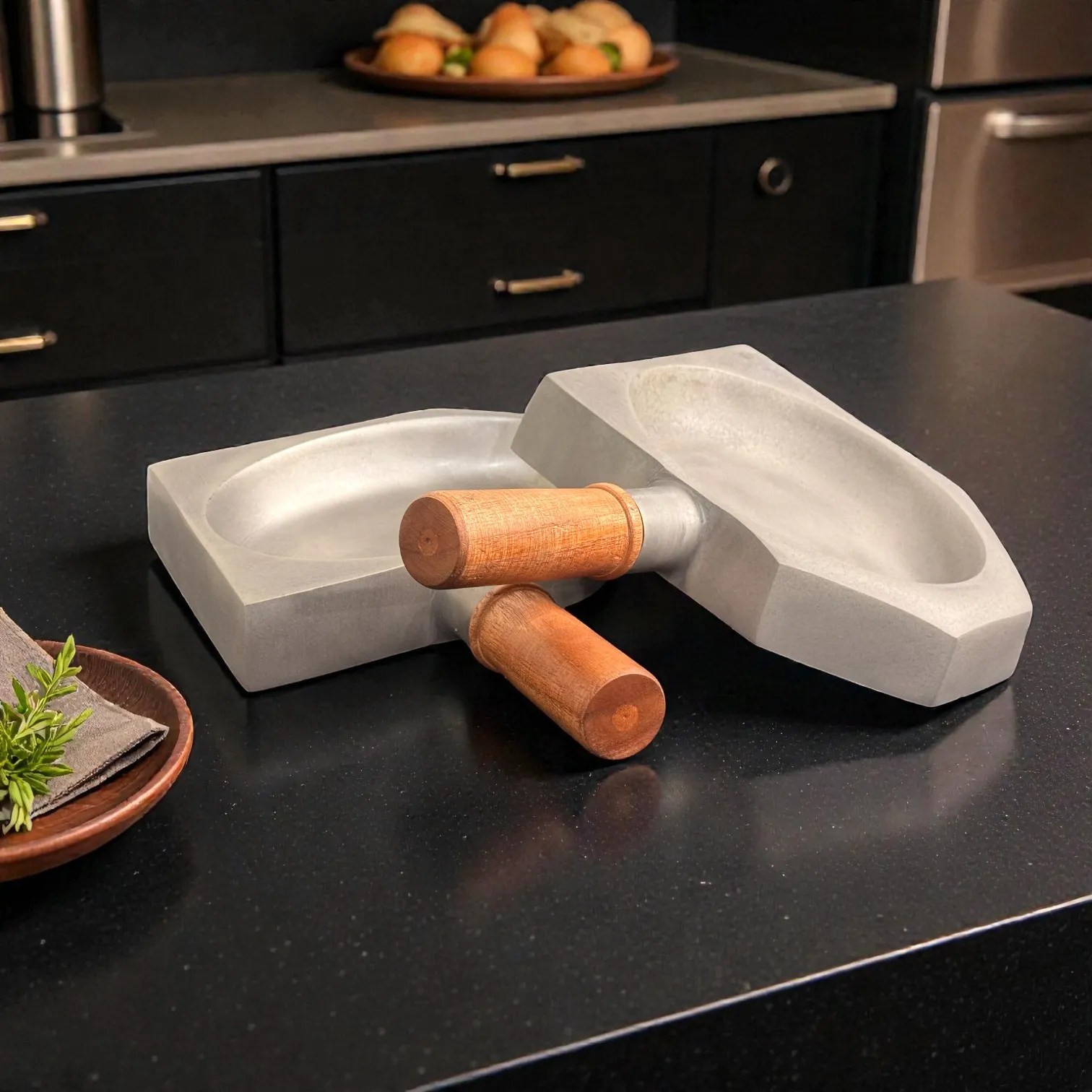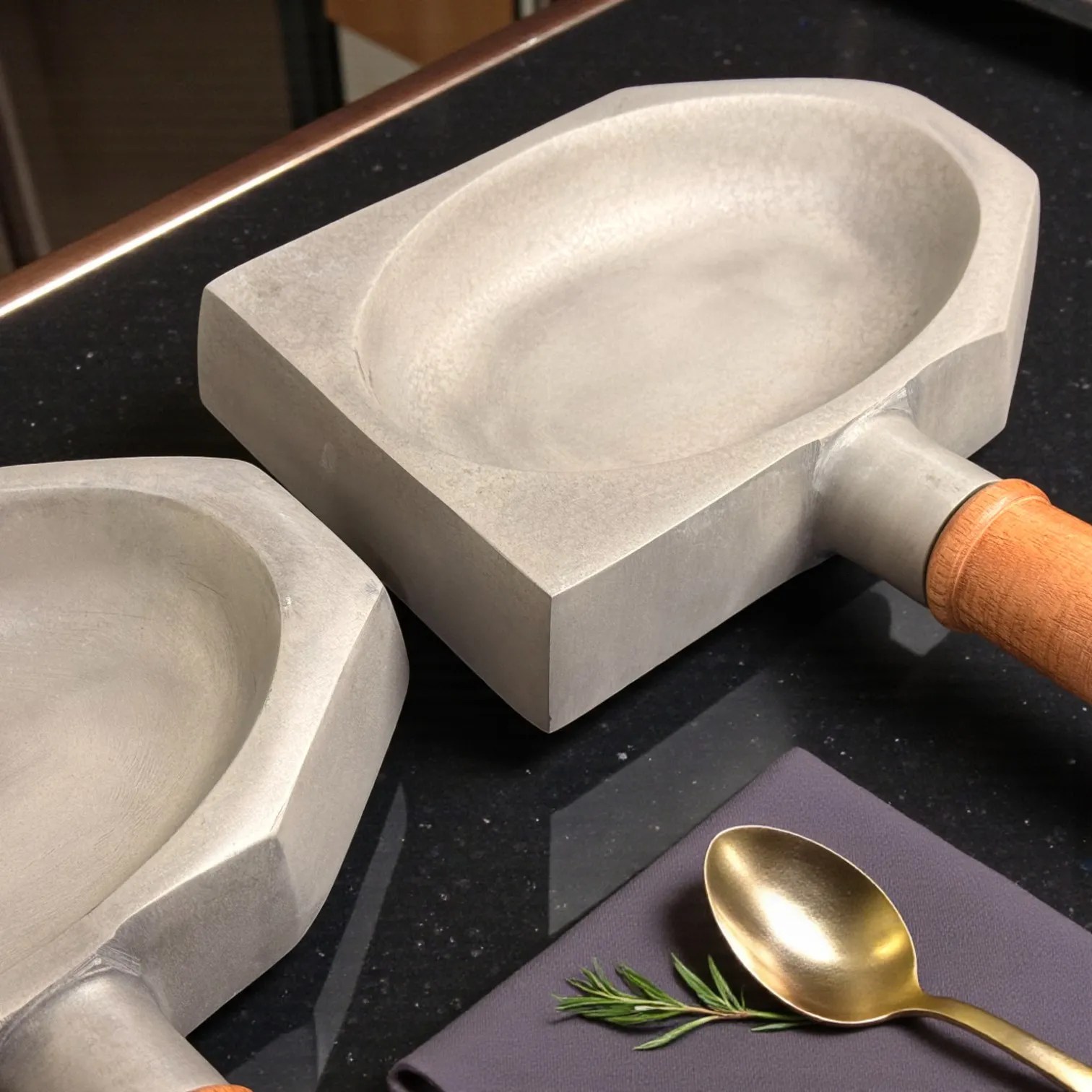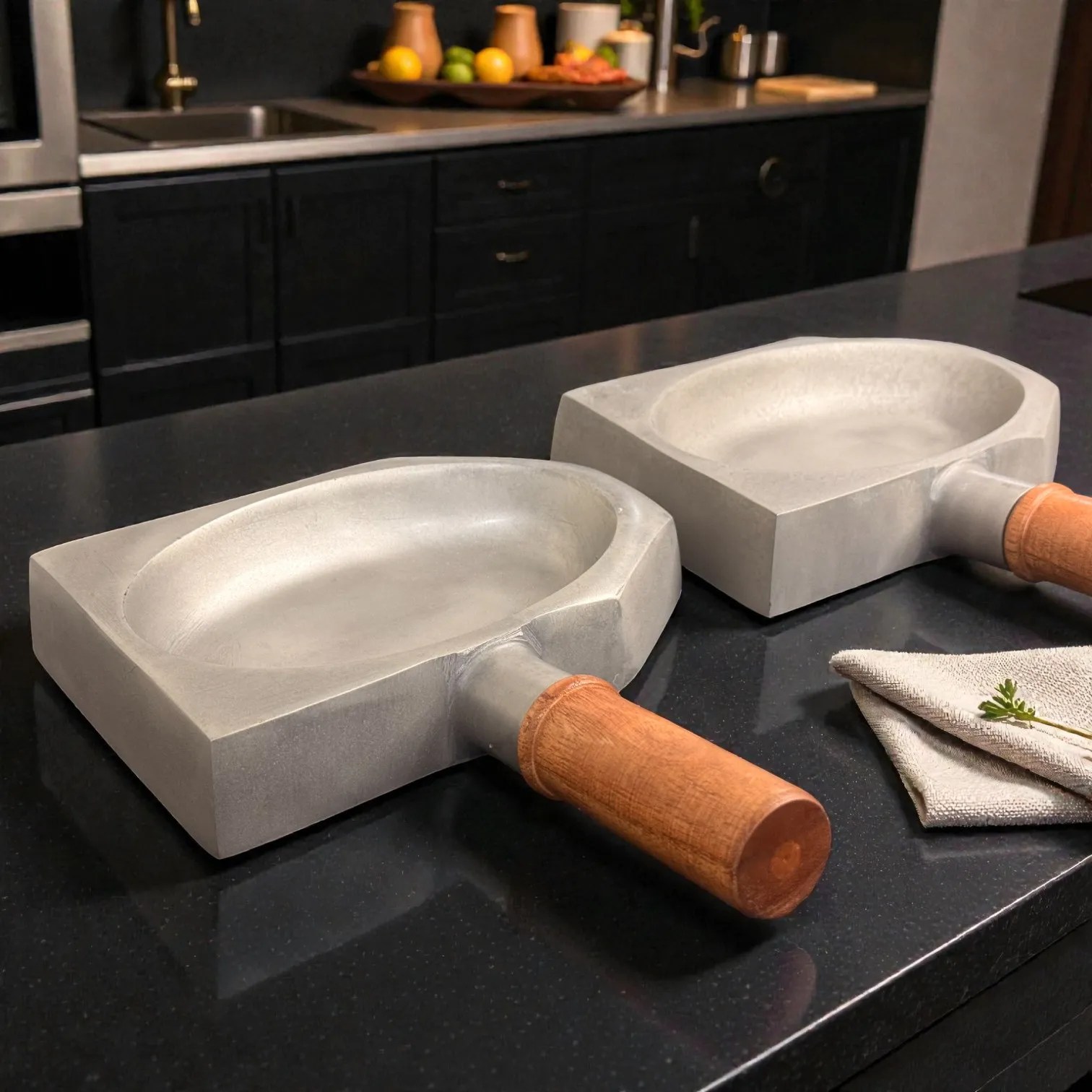 Bring restaurant-style presentation home with the Harmiche SlateGrip Hard Anodised Aluminium Servers (Set of 2) — modern tabletop serveware designed to make everyday food look intentional, elevated, and guest-ready. Each piece blends a wide, shallow serving bowl with a sculpted geometric base and a warm wooden handle, giving you the visual impact of a mini skillet and the practicality of a carry-and-serve dish. The compact footprint is ideal for small portions, couple dining, and curated party platters.