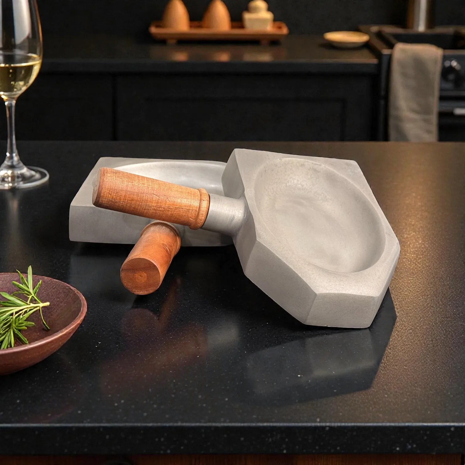 Crafted from hard anodised aluminium, the serving surface is created through an anodization process that toughens aluminium into a durable, scratch-resistant, corrosion-resistant, and non-reactive finish. In simple terms: it’s made to handle frequent use, keep its clean matte look, and stay easy to maintain. The graphite-grey body adds a premium, stone-like aesthetic that pairs beautifully with modern kitchens and dining tables, while the natural wooden handle adds comfort, grip, and a handcrafted balance.
